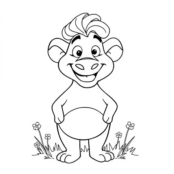 Imagine a canvas filled with vibrant colors as you bring Pumbaa to life, his joyful spirit leaping off the page. These five coloring pages offer a unique glimpse into the beloved warthog's adventures, each scene inviting you to express your creativity while capturing the essence of friendship and fun. Whether it's Pumbaa dancing with Timon or exploring the jungle, there's a certain charm to these illustrations. But how do these moments reflect Pumbaa's character and the lessons he shares?